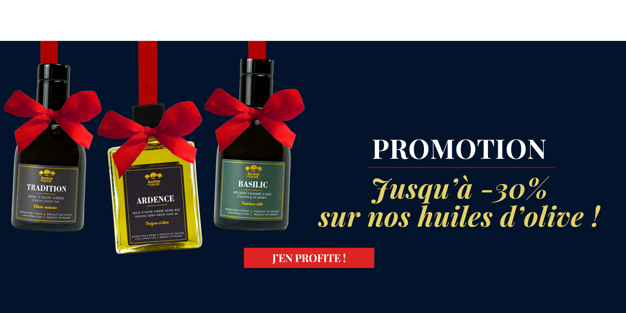 EN DÉCEMBRE, PROFITEZ DE PROMOTIONS ALLANT JUSQU’À -30% SUR NOS HUILES D’OLIVE !
