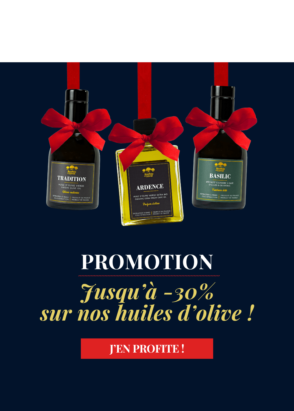 EN DÉCEMBRE, PROFITEZ DE PROMOTIONS ALLANT JUSQU’À -30% SUR NOS HUILES D’OLIVE !