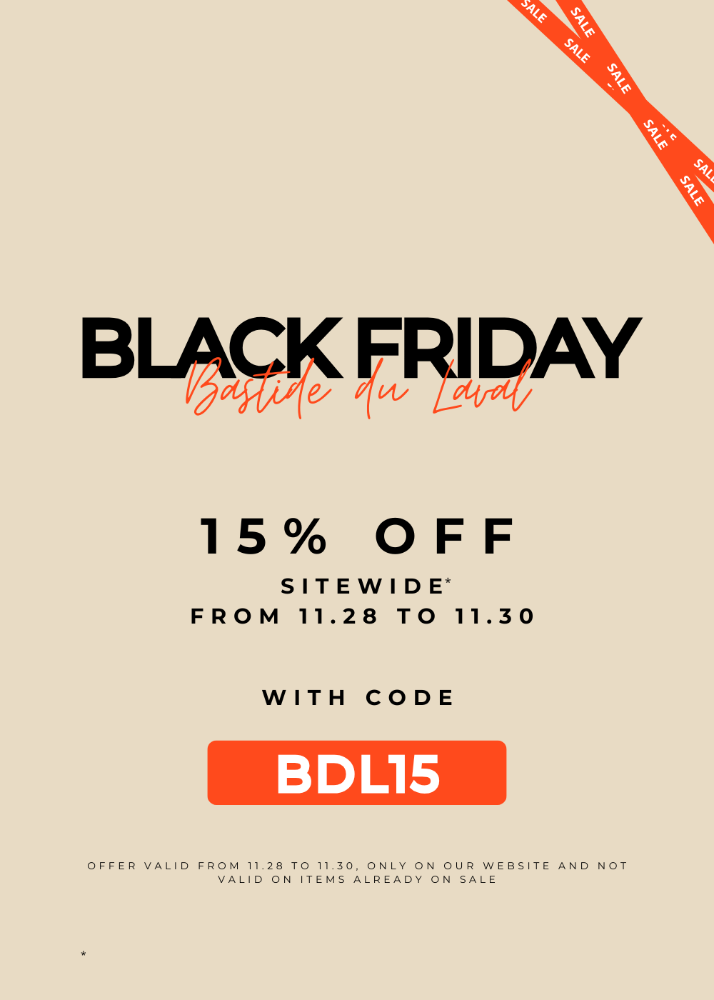 -15% OFF SITEWIDE WITH CODE BDL15 FROM 28.11 TO 30.11 INCLUDED!*